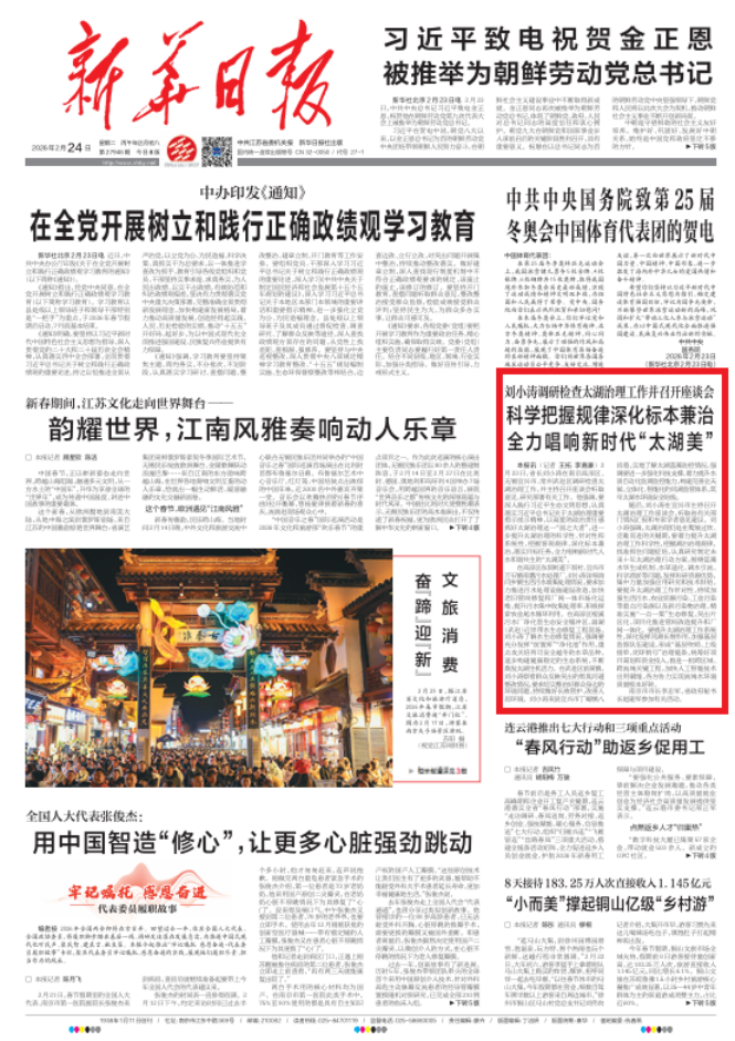 2月23日,大年初七,春节假期的最后一天,江苏省省长刘小涛在南京高淳区、无锡宜兴市、常州武进区调研检查太湖治理工作,并主持召开座谈会听取意见、研究部署有关工作。他强调,要以高度的政治责任感抓好太湖治理这一“国之大者”,进一步提升太湖治理的科学性、针对性和系统性,把握客观规律,深化标本兼治,落实目标任务,全力唱响新时代人水和谐共生的“太湖美”。